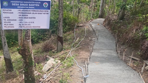 Nasal Kaur, TR.ID ~ Pembangunan jalan rabat beton Dana Desa tahun 2025 tahap II akses menuju bendungan air bersih di Dusun 1 Desa Sinar Banten kecamatan Nasal Kabupaten Kaur, Sukses dan selesai pembangunannya dan sudah bisa di manfaatkan oleh masyarakat, Rabu 14.08.2025